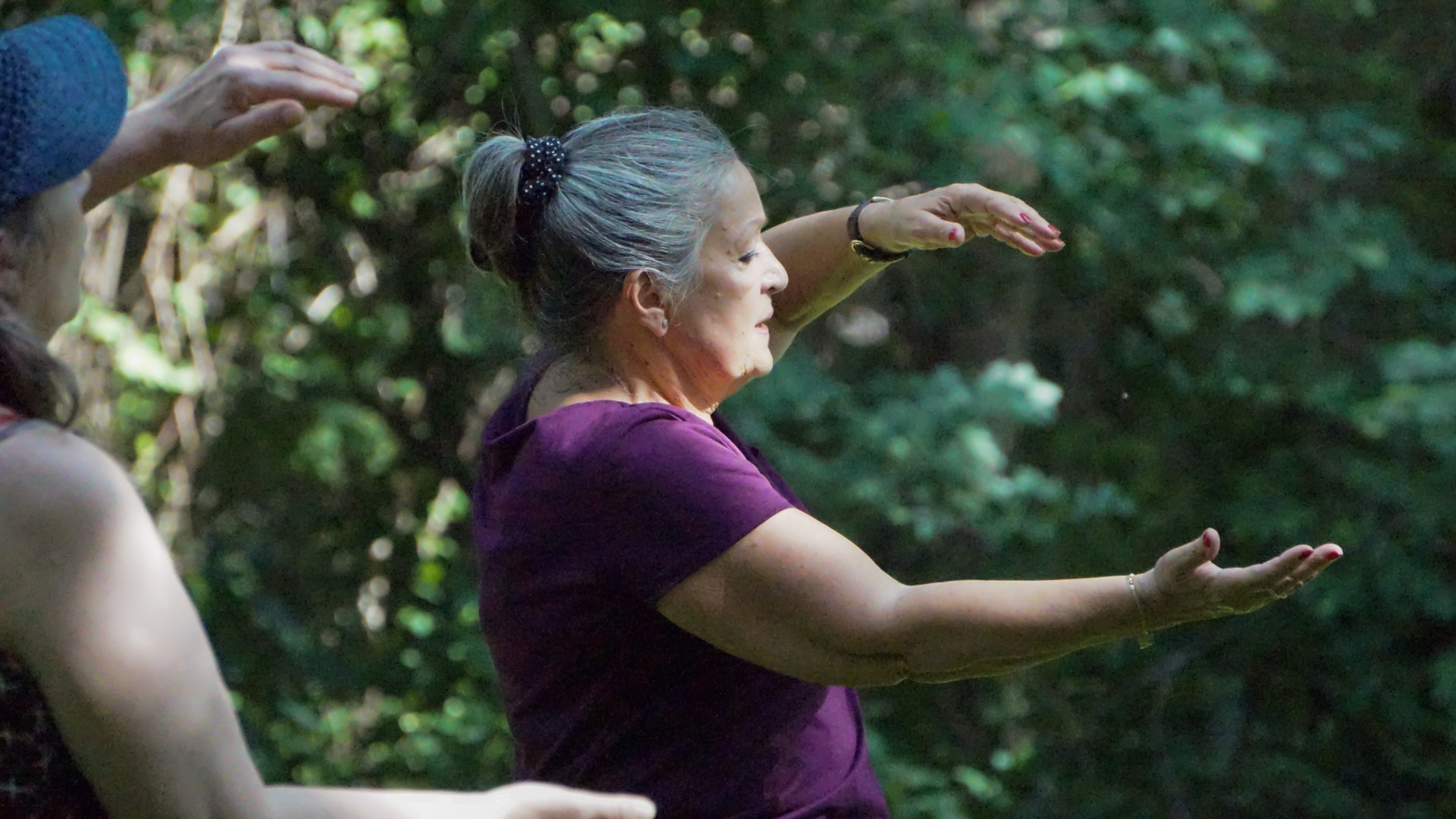 Mit sanften Bewegungen. Und ruhigem Atmen im Stehen oder Sitzen.