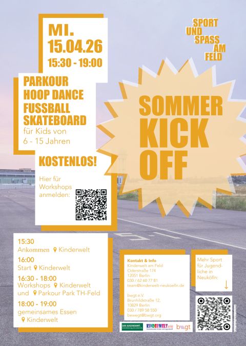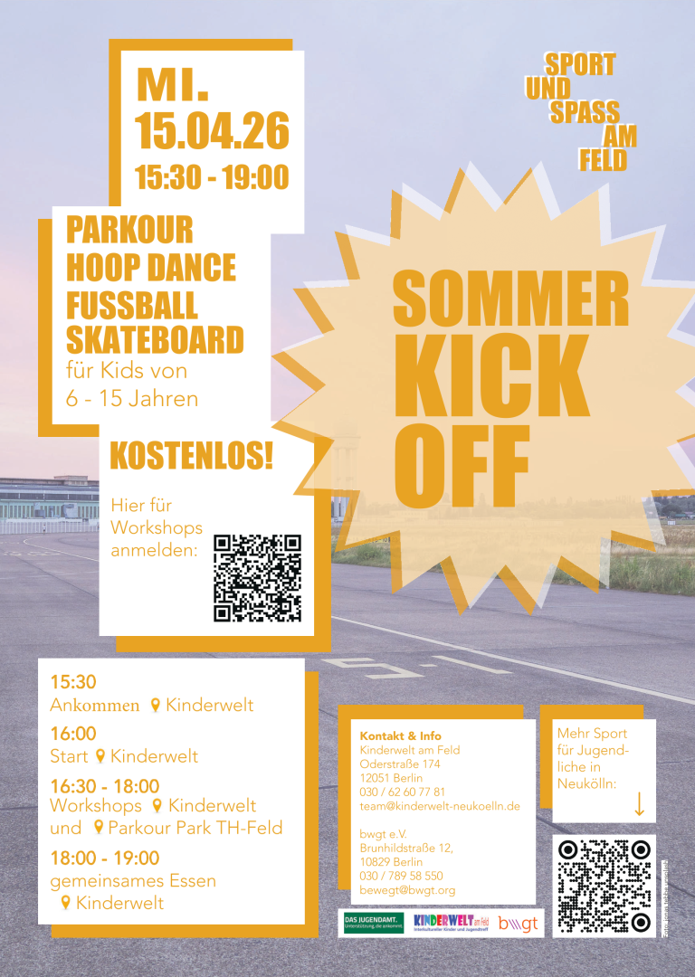 Gemeinsam wollen wir am 15.4. die Outdoor- Saison auf dem Tempelhofer Feld und auf dem Gelände der Kinderwelt am Feld eröffnen!